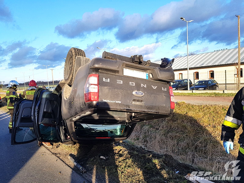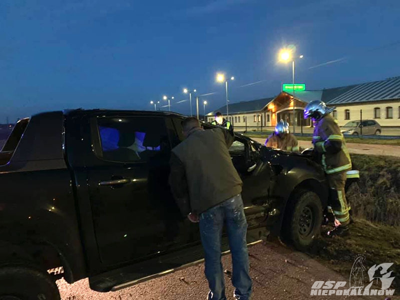 Po dojeździe zastaliśmy dwa pojazdy bardzo mocno zniszczone w wyniku wypadku na skrzyżowaniu dróg, w tym jeden terenowy, marki FORD leżący na dachu w wyniku kolizji. W wypadku uczestniczył również trzeci pojazd, który tylko dzięki szybkiej reakcji kierowcy, został nieznacznie uszkodzony. Wszyscy podróżujący pojazdami opuścili je samodzielnie przed naszym przybyciem.