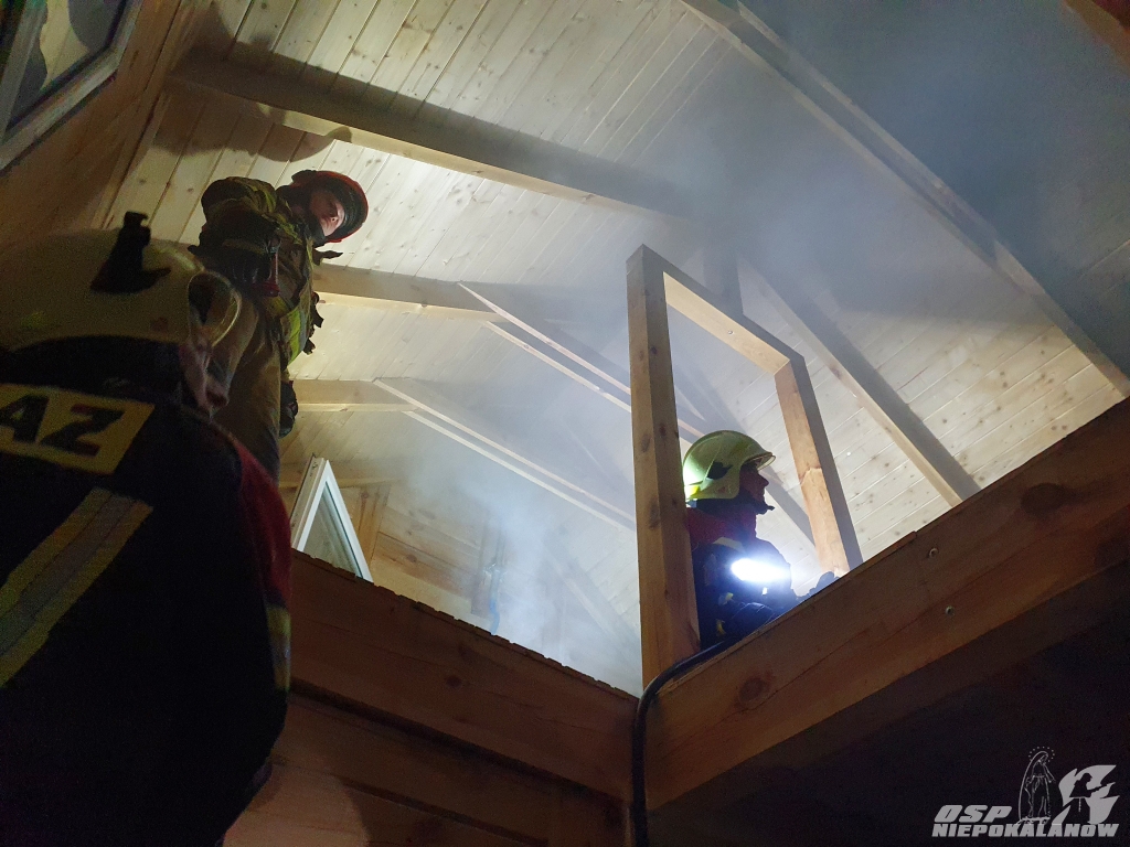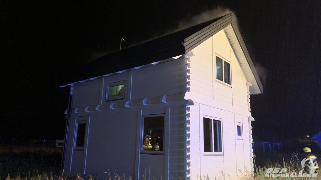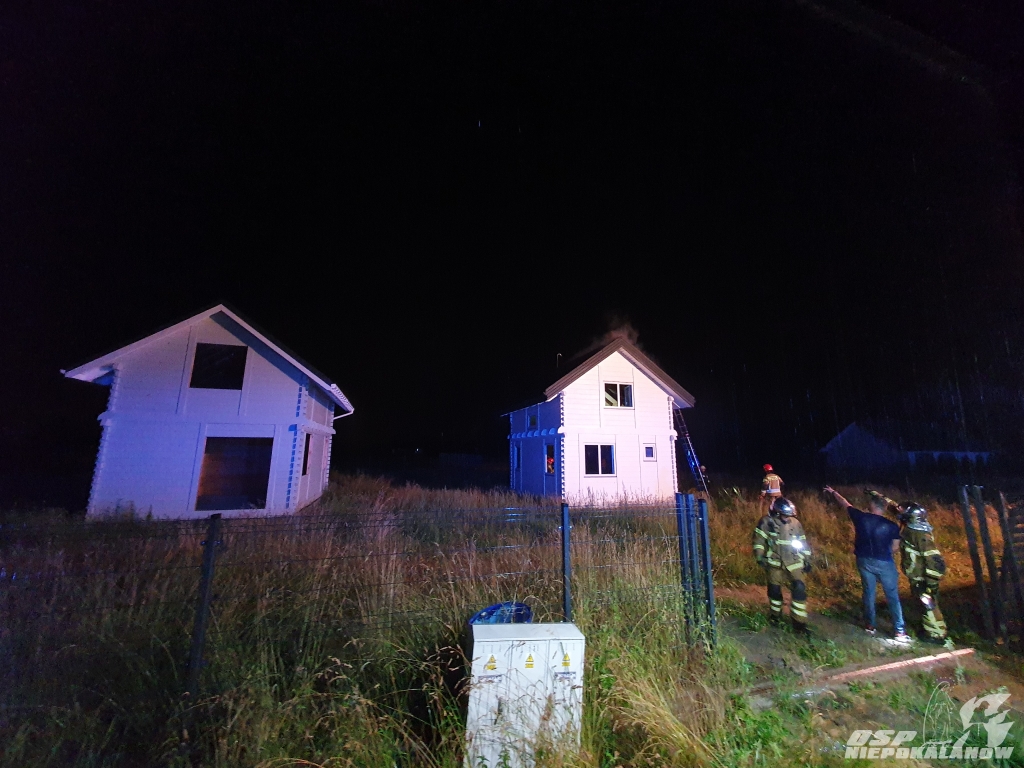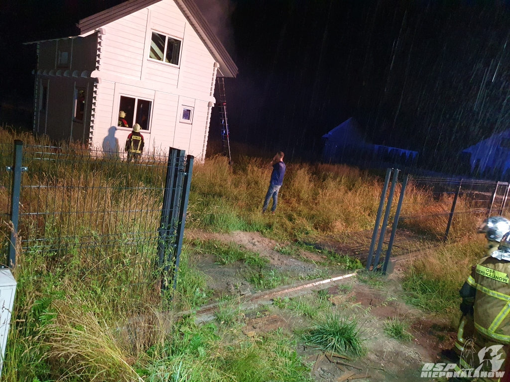 Pożarem objęte było poddasze domu, w który prawdopodobnie uderzył piorun. Na szczęście budynek nie był jeszcze zamieszkały, a pożar zauważył sąsiad. Akcja była utrudniona z uwagi na fakt że wyładowanie przedostało się przez poszycie dachowe i trudno było zlokalizować żródła ognia. W niektórych miejscach użyta była od wnętrza domu piła do dachów aby odsłonić poszycie.